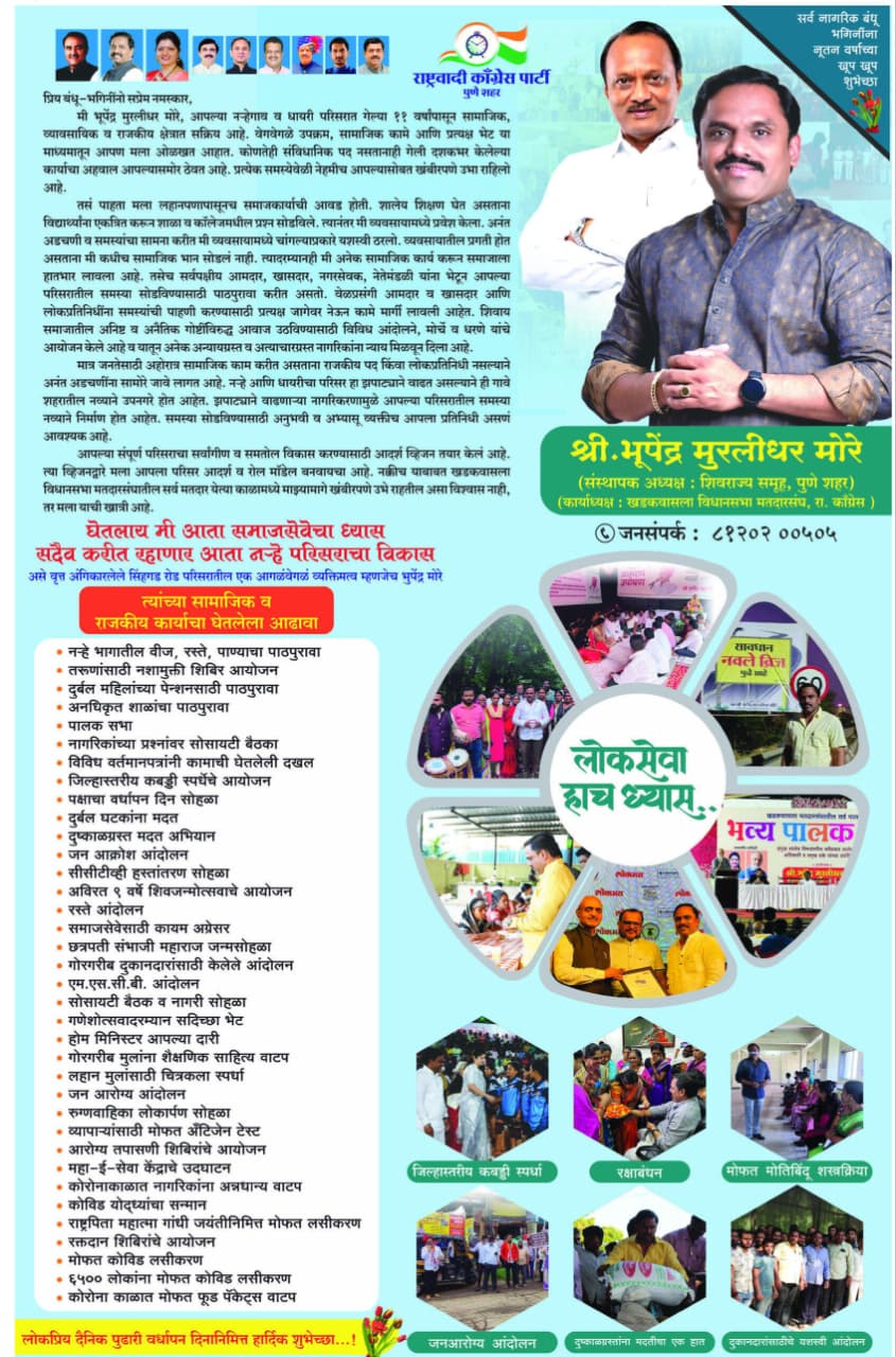 Bhupendra Murlidhar More, born and raised in Narhe, Pune, is a passionate social worker and grassroots leader dedicated to improving civic infrastructure and community welfare. Known for innovative initiatives like symbolic protests (such as planting rose trees in potholes), Bhupendra works tirelessly to bring attention to public issues and drive real solutions.